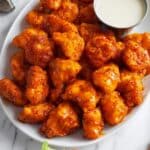 These Air Fryer Buffalo Chicken Bites are a quick and flavorful appetizer or snack featuring tender chicken pieces coated in a crispy, seasoned crust and tossed in spicy buffalo sauce. Perfect for game day or a tasty treat, they’re served with fresh veggies and your choice of ranch or blue cheese dressing.