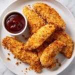 Crispy and flavorful air-fryer chicken tenders made with tender chicken strips coated in a seasoned panko breadcrumb mixture and cooked to golden perfection. These chicken tenders are quick to prepare, healthier than traditional frying, and perfect served with your favorite dipping sauces like BBQ, ranch, or ketchup.