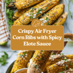 Air Fryer Corn Ribs are a delicious and easy appetizer or side dish made by cutting corn on the cob into ribs, seasoning them with a flavorful spice blend, and air frying until perfectly crispy. Topped with a creamy, tangy Elote-style sauce featuring mayonnaise, sour cream, cotija cheese, cilantro, and lime, these corn ribs deliver a smoky, spicy, and savory bite that’s perfect for any occasion.