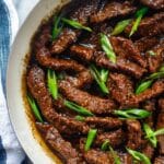 - Garnish and Serve: Remove from heat and sprinkle the chopped green onions over the beef. Serve immediately for best flavor and texture.