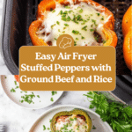 Keywords: air fryer stuffed peppers, stuffed bell peppers, ground beef stuffed peppers, easy stuffed peppers, air fryer recipes, weeknight dinner