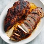 This air-fryer turkey breast recipe delivers juicy, flavorful turkey with a beautifully caramelized skin thanks to a savory dry rub made of brown sugar and spices. The turkey is air-fried to perfection, resulting in a quick and easy preparation that is ideal for a delicious weeknight meal or festive occasion.