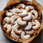 Delightfully buttery and tender Almond Crescent Cookies feature a perfect blend of all-purpose and almond flour, enhanced with vanilla and almond extracts. These crescent-shaped cookies are lightly golden and finished with a dusting of powdered sugar, making them an elegant and classic treat.