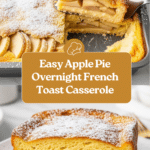 This Apple Pie Overnight French Toast Casserole is a decadent, comforting breakfast or brunch dish featuring layers of buttery brioche bread, tender spiced apples, and a rich custard soaked overnight, then baked to golden perfection. Topped with powdered sugar and maple syrup, it combines the flavors of classic apple pie with the ease of an overnight French toast bake.
