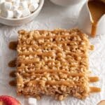 Keywords: Apple Pie Rice Krispie Treats, Rice Krispie Treats, Apple Pie Spice Dessert, Caramel Drizzle Treats, Fall Dessert