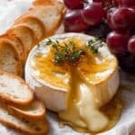 Baked Brie with Honey and Thyme served with Crostini and Grapes Recipe
