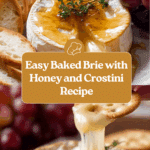 Baked Brie is a warm, gooey cheese dish that’s perfect for sharing as an appetizer or snack. With just a few simple ingredients and easy steps, you can create a deliciously melty treat that pairs beautifully with crostini and fresh grapes.
