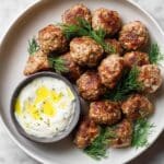 These Baked Chicken Meatballs are a healthy, flavorful dish featuring lean ground chicken combined with herbs and spices, baked to perfection, and served with a refreshing homemade dill yogurt sauce. Perfect as a light main course or appetizer.