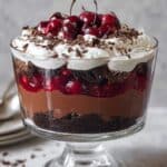 Keywords: Black Forest trifle, chocolate cherry trifle, layered dessert, chocolate pudding dessert, cherry trifle, no bake trifle, holiday dessert