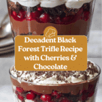 The Black Forest Trifle is a delightful twist on the classic Black Forest cake, layered beautifully with chocolate cake, cherry filling, rich pudding, and fluffy whipped cream. This easy-to-assemble dessert makes an impressive centerpiece for any occasion and can be prepared ahead for convenience.