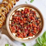 Keywords: Bruschetta, dip, appetizer, Italian dip, creamy dip, tomato dip, party dip, easy appetizer