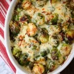 Keywords: Brussels sprouts, gratin, cheese sauce, Gruyere, Parmesan, roasted Brussels sprouts, side dish, healthy gratin, low fat