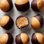 6. Make Ahead and Storage: Undipped peanut butter balls can be made up to 1 day ahead and stored in an airtight container in the refrigerator. Dipped buckeyes can be frozen for up to 1 month by first freezing them individually on a baking sheet until firm, then transferring them to an airtight container and keeping them frozen.