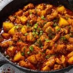 Buldak, also known as Korean Fire Chicken, is a spicy and flavorful dish made from marinated boneless chicken thighs coated in a fiery sauce made with gochugaru, gochujang, garlic, and other seasonings. This dish is cooked on the stovetop and finished under the broiler with a layer of melted mozzarella cheese, creating a perfect combination of spicy, savory, and cheesy flavors ideal for spice lovers.