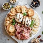 Keywords: burrata appetizer, easy appetizer, prosciutto appetizer, no cook appetizer, party appetizer, cheese board
