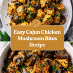 Cajun Chicken Mushroom Bites are a flavorful, quick dish perfect for weeknight dinners or gatherings. Tender chicken thigh pieces seasoned with a blend of Cajun spices are sautéed alongside earthy mushrooms, creating a savory, satisfying meal.