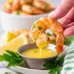- Make the butter lemon sauce: While the shrimp are cooking, mix the melted butter and lemon juice together in a large bowl to create a flavorful sauce.