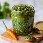 - Store the seasoning: Transfer the green seasoning paste to a glass jar with a tight-fitting lid, such as a mason jar. Avoid plastic containers to prevent the strong aroma from being absorbed. Store in the refrigerator for up to 2 weeks.