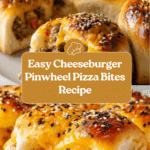 These Cheeseburger Pinwheel Pizza Bites combine the savory flavors of classic cheeseburgers with cheesy pizza in a fun, bite-sized roll. Ground beef cooked with onions, garlic, tomatoes, and spices is spread over pizza dough, rolled into pinwheels, and baked to golden perfection. Topped with melted cheddar cheese and a sprinkle of sesame seeds, these pinwheels make an irresistible appetizer or snack perfect for parties and family gatherings.