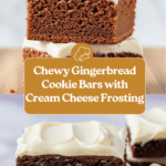Keywords: gingerbread bars, gingerbread cookie bars, cream cheese frosting, holiday dessert, chewy gingerbread, easy gingerbread recipe