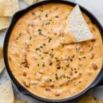 - Serve: Transfer dip to a serving bowl and serve warm with tortilla chips, bread cubes, or vegetables. It also pairs well served on chili hot dogs, nachos, or baked potatoes.