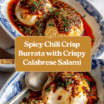 This Chili Crisp Burrata is a flavorful twist on creamy Italian cheese, topped with a spicy, smoky chili crisp made from calabrese salami and aromatic spices. It’s perfect for a shareable appetizer or a standout snack that pairs beautifully with toasted baguette slices.