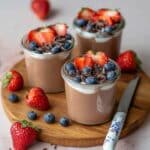 This creamy and rich Chocolate Protein Pudding is a delicious and nutritious dessert or snack option, combining the protein power of Greek yogurt and chocolate protein powder with the deep flavor of cocoa. It’s a quick no-cook recipe that can be made in under 10 minutes and chilled to perfection, making it perfect for a healthy treat or post-workout meal.