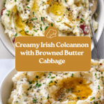 Traditional Irish Colcannon is a comforting dish made with a blend of russet and red potatoes mashed together with savory browned butter, tender sautéed savoy cabbage, and fresh green onions. This hearty, creamy side combines the earthiness of potatoes with the mild crispness of cabbage, elevated by nutty browned butter and a touch of chicken broth for depth. Perfect for St. Patrick’s Day or any cozy meal, Colcannon offers a delicious, rustic twist on classic mashed potatoes.