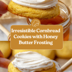 These Cornbread Cookies with Honey Butter Frosting combine the rustic charm of cornbread with the sweetness of cookies, topped with a luscious honey buttercream frosting. Rolled in extra cornmeal for a delightful texture and finished with flaky sea salt and honey drizzle, they make a perfect treat for any occasion.