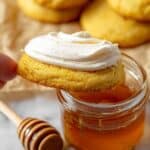 Keywords: cornbread cookies, honey butter frosting, sweet cornbread cookies, homemade cookies, fall dessert, honey buttercream