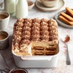 - Serve: Before serving, generously dust the top of the tiramisu with cocoa powder. Slice and enjoy this festive, creamy dessert.