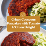 Keywords: couscous pancake, tomato onion recipe, crispy couscous, vegetarian pancake, Mediterranean dish