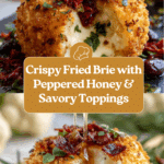 Crispy Fried Brie with Pepper Honey is a delightful appetizer that balances creamy, melted cheese with a touch of sweetness and spice. Topped with flavorful olives, crunchy prosciutto, and a drizzle of peppered honey, this dish is perfect for entertaining or a special treat.
