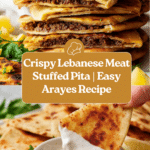 Deliciously crispy Lebanese meat-stuffed pita pockets, known as Arayes, filled with a spiced lamb or beef mince mixture and pan-fried until golden. Served with a creamy whipped tahini sauce, this recipe offers an authentic Middle Eastern street food experience perfect for a flavorful snack or light meal.