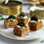 Keywords: steak bites, crispy steak, filet mignon appetizer, fried steak cubes, tamari steak bites, panko crusted steak, caviar appetizer, finger food