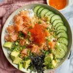Keywords: salmon bowl, sushi bowl, crunchy salmon roll, deconstructed sushi, Japanese cuisine, sushi rice bowl