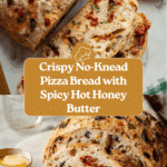 This Crusty No-Knead Pizza Bread with Hot Honey Butter combines the best of artisan bread and bold pizza flavors in one easy recipe. With simple ingredients and minimal effort, you can enjoy a golden, crispy loaf filled with savory toppings and a sweet, spicy butter to spread on top.