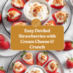 Deviled Strawberries are a delightful and elegant dessert featuring juicy fresh strawberries topped with a creamy, sweetened cream cheese filling and a crunchy golden Oreo-strawberry gelatin topping. This no-bake treat perfectly balances creamy, fruity, and crunchy textures, making it a fun and festive appetizer or dessert for any occasion.