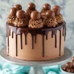 - Decorate Cake: Drizzle ganache around the cake edges to create a drip effect, then fill the center of the cake top. Use remaining frosting to pipe swirls around the edges. Top each swirl with a Lindor truffle.