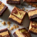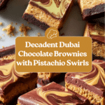Dubai Chocolate Brownies combine the rich, fudgy texture of classic chocolate brownies with a unique Middle Eastern twist featuring crispy kataifi pastry, creamy tahini, and smooth pistachio cream. Topped with a luscious milk chocolate ganache and swirls of pistachio cream, this dessert offers a delightful balance of crunch, creaminess, and intense chocolate flavor, making it a sophisticated treat perfect for special occasions or gourmet indulgence.