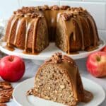 Keywords: apple cake, pecan cake, caramel glaze, bundt cake, fall dessert, easy cake recipe, apple dessert