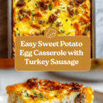 This Easy Sweet Potato Egg Casserole is a comforting and nutritious breakfast option that combines tender sweet potatoes, savory turkey sausage, and a flavorful egg mixture. It’s perfect for meal prep or feeding a crowd on a weekend morning.