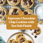These Espresso Chocolate Chip Cookies combine the rich, robust flavor of espresso with classic chocolate chip cookie dough, creating a uniquely delicious treat. Infused with espresso grounds and chunks of dark chocolate, these cookies offer a perfect balance of bitterness and sweetness, complemented by a sprinkle of flaky sea salt for that gourmet finish.