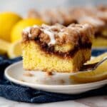 Keywords: lemon coffee cake, lemon cake with icing, moist lemon cake, cinnamon sugar coffee cake, streusel topping cake, lemon dessert
