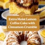 This Extra Moist Lemon Coffee Cake with Icing is a delightful treat bursting with fresh lemon flavor and a moist, tender crumb. Layered with a cinnamon sugar center and topped with a buttery crumb streusel, it’s finished with a tangy lemon glaze that perfectly balances sweet and citrusy notes. Perfect for breakfast, brunch, or a sweet snack with coffee, this cake combines unique textures and flavors to please any crowd.