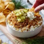 This Fried Pickle Dip is a tangy, creamy treat perfect for snacking or parties. Featuring zesty dill pickles and crunchy toasted Panko breadcrumbs, it offers a delightful mix of textures and flavors that potato chips will love.