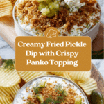 Keywords: fried pickle dip, toasted panko dip, creamy pickle dip, appetizer recipe, ranch seasoning dip, party dip