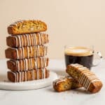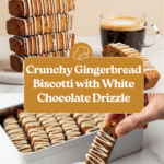 This Gingerbread Biscotti recipe offers a delightful holiday treat with warm gingerbread spices, mini diced ginger, and a touch of molasses. Twice-baked to achieve the perfect crisp texture, these biscotti are finished with a drizzle of smooth white chocolate, making them an irresistible snack or gift during festive seasons.