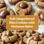 Gingerbread Kiss Cookies combine warm spices with the sweet surprise of a chocolate Hershey’s Kiss on top. These festive treats are perfect for holiday baking or anytime you want a cozy, flavorful cookie.
