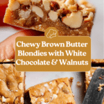 Delightfully rich and chewy blondies made with browned butter, brown sugar, and studded with white chocolate chips and toasted walnuts. These classic blondies have a nutty depth from the browned butter and a perfect balance of sweet and salty, finished with a sprinkle of sea salt flakes. They are baked to perfection in a square pan, creating a crackly top and tender, chewy inside.